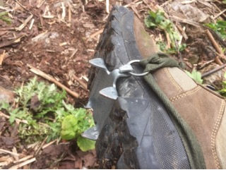一度リングに通して今度は踵を包むようにぐるっと1周。