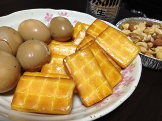 今日は味付け玉子とチーズがメインなので、