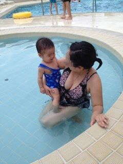 息子を抱えたまま嫁がコケて、双方豪快に水没する事案が発生www