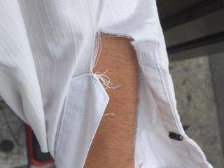 破けたYシャツで出社するんだぜ。敢えてね。