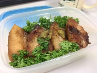 豚バラを炒めて醤油と山葵の特製ソースで煮込んでみた。