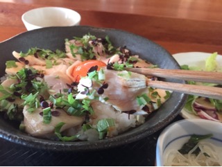 わさび醤油で食べる親子丼なんだって。