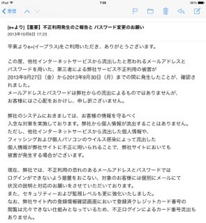 メールアドレスとパスワードが漏れたかもメールが届いてた。