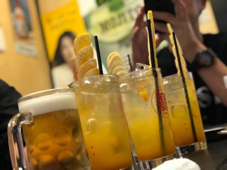 凍結した果物のタワーが有名な立ち飲みふくふく…の系列店へ。