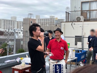 今日は都内某所のビル屋上を貸し切って130人でBBQ。