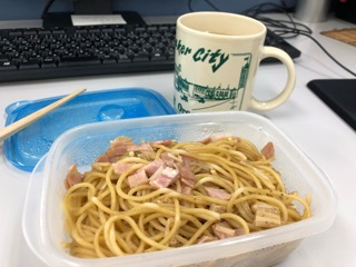 ベーコンとえのきと青唐辛子。味付けは白だしと醤油。