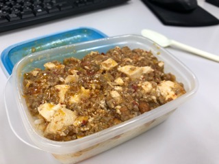 今日のお弁当は麻婆豆腐丼。