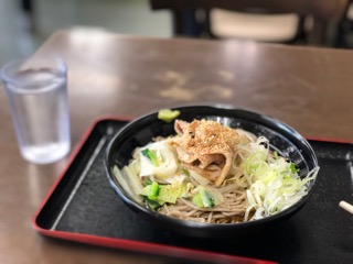 ビタミン摂らないとと思って豚しゃぶぶっかけ蕎麦をいただきますよ。