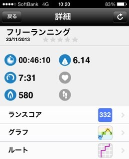 ゆっくりキロ7分を意識して...と思ったらスゲースローペースだったね。