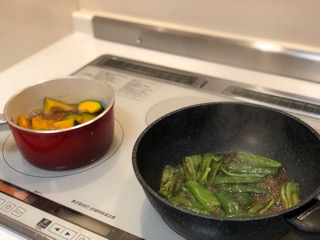 今夜の晩御飯やら明日の弁当やらのおかずを仕込んでます。