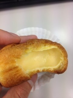 皮の中にいっぱいに詰まったカスタードクリームは甘さ控えめだ。
