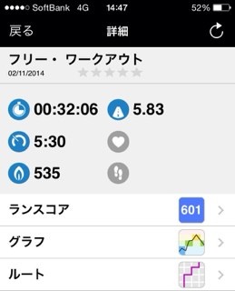 走ってきたよ。5.8km、32分。