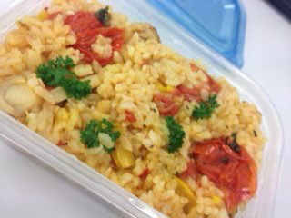 今日のお昼は昨夜作ったパエリアの余り。