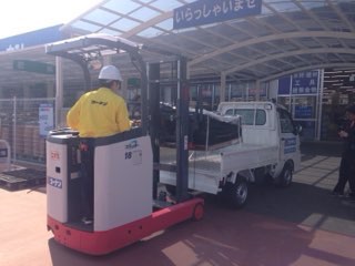 積み荷を降ろすと車体が「おいおい大丈夫か」ってくらい沈む。