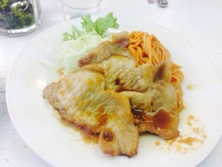 神保町にある「ボーイズカレー」ってカレー屋さんのしょうが焼き。