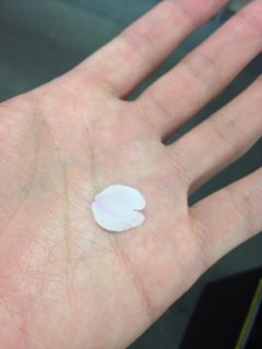 帰ってきたら頭に桜の花びらが付いていた。