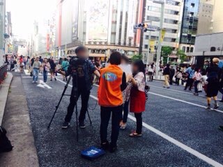日本テレビかな、特車二課みたいな派手なオレンジのジャケットを着てた。