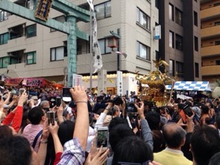 今年も人だらけで御神輿はほとんど見えないけど