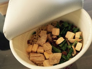 炭火焼チキン、チェダーチーズ、ガーリックチップ、インゲン(たしか)。