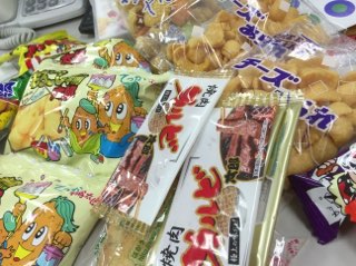 某社のフェアに遊びに行ったら、お土産としていっぱい駄菓子をいただいた。