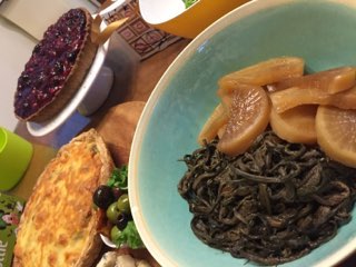 ベリーのパイにキッシュ、青カビチーズ、オリーブ、