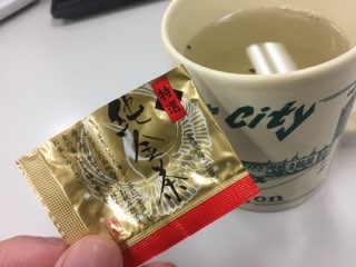 事務所に「純金茶」なる不思議なお茶が入荷していた。