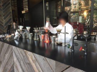 面白いカウンターで珈琲を注文。