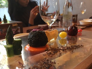 アスパラガスと、トリュフに見立てたコロッケと、