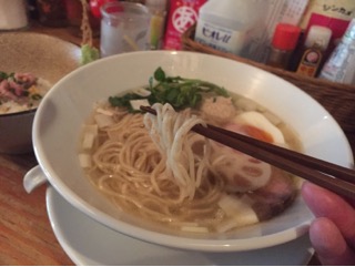 化学調味料無添加の海老鶏だしの塩ラーメン。