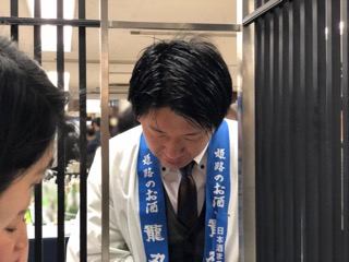 僕の顔見てブースにやってきてくれた「龍力」本田商店の若社長。