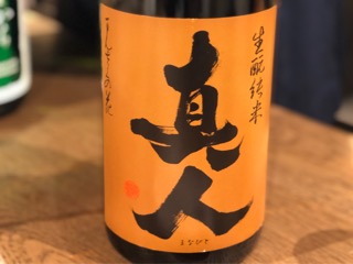 秋田県の地酒「まんさくの花」の生酛純米 真人(まなびと)。