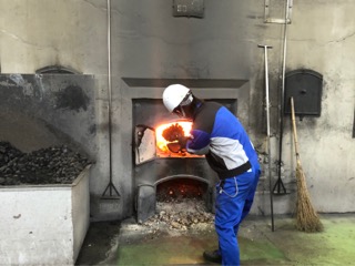 昔ながらの石炭で蒸留する風景を見ることができました。