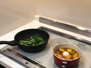 かぼちゃは煮てます。
