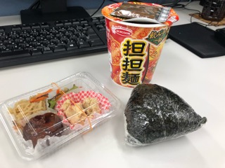 おにぎり120円 + 惣菜セット100円 + カップラーメン120円で