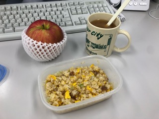 タッパーに詰めてきた冷凍チャーハンを噛みしめてる。