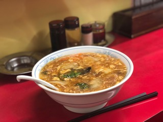 西一番街の一角にたたずむ老舗の台湾料理屋「新珍味」。