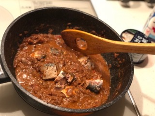 6. てろんってしてきたらそこにカットトマト缶を入れて