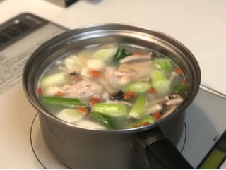 作り方は、食材をお水と酒で煮込んで〆に塩コショウ。