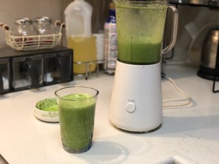 林檎、ほうれん草、酒粕、蜂蜜、かちわり氷を使って作った