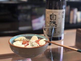 そこに塩と乾燥バジルを振りかけてひとくち。